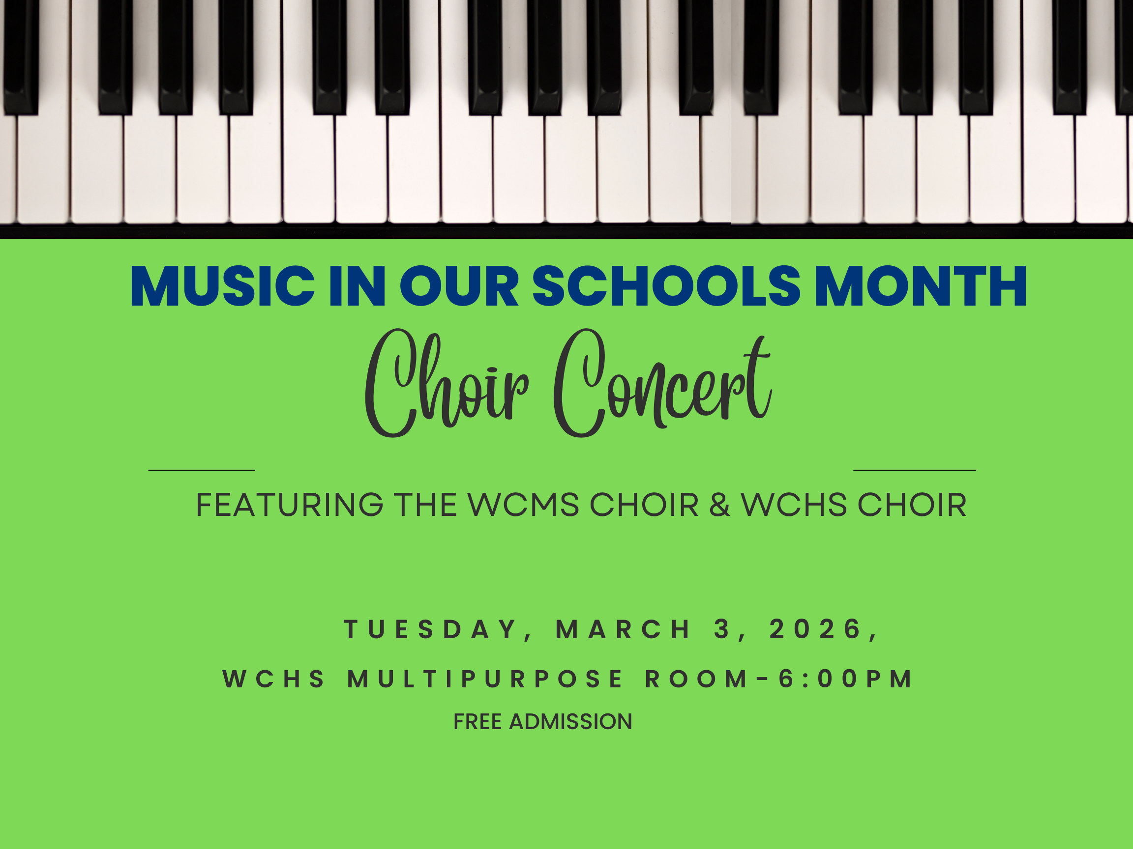 - 3/3: Tuesday Choir Spring Concert, 6 pm, WCHS Auditorium.